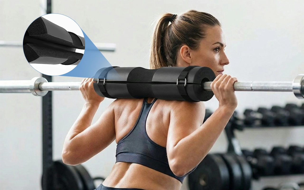 Koupil jsem tuhle podložku pro manželku a konečně ji dřepy baví. Pevně obejme osu, neklouže a ona se může soustředit na techniku místo na bolest.