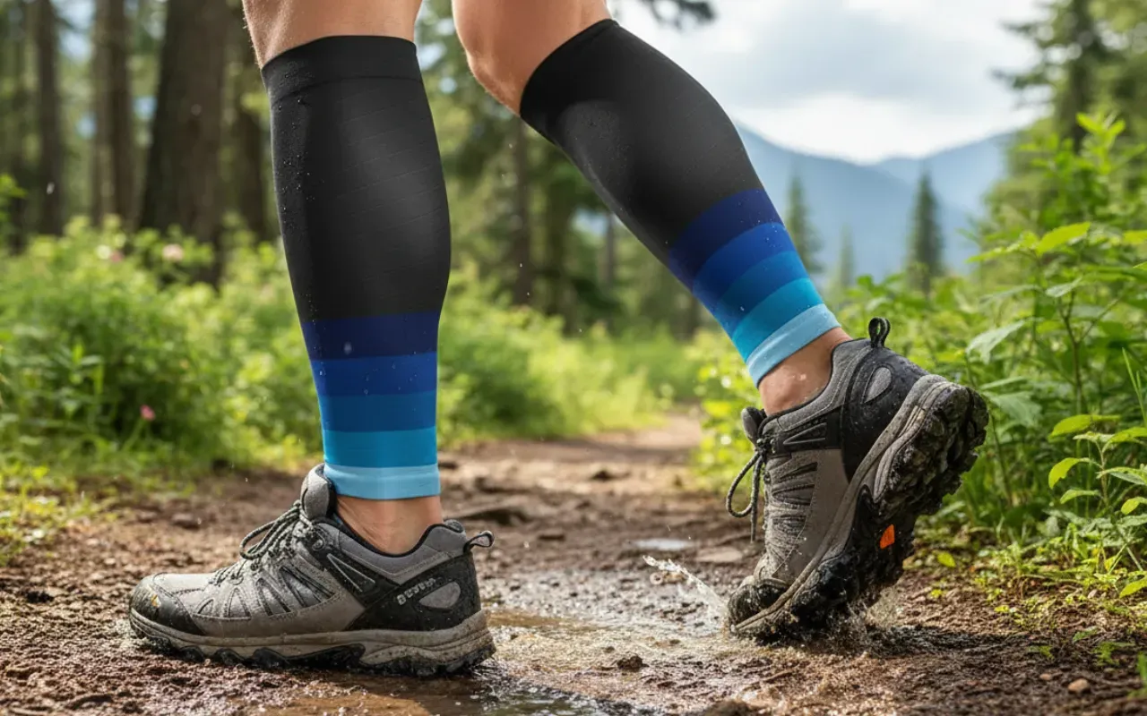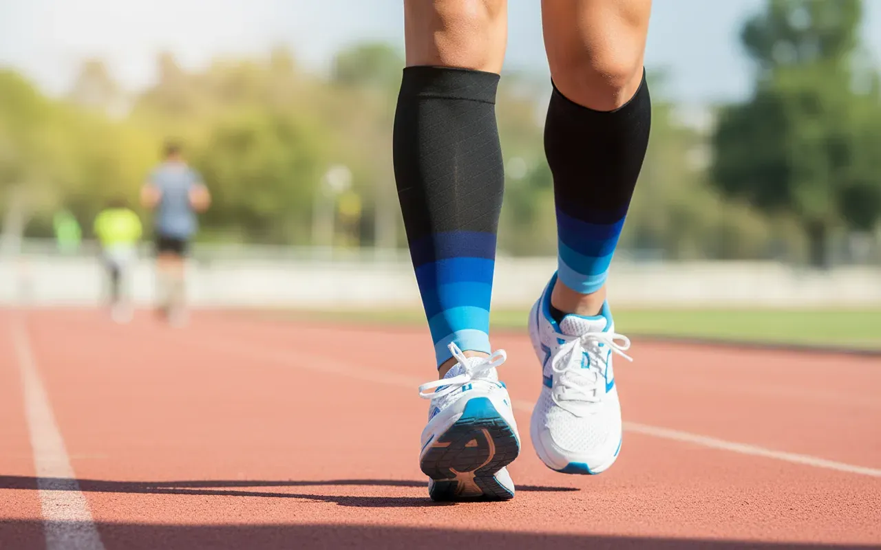 1 pár kompresních lýtkových návleků s oporou pro běhání