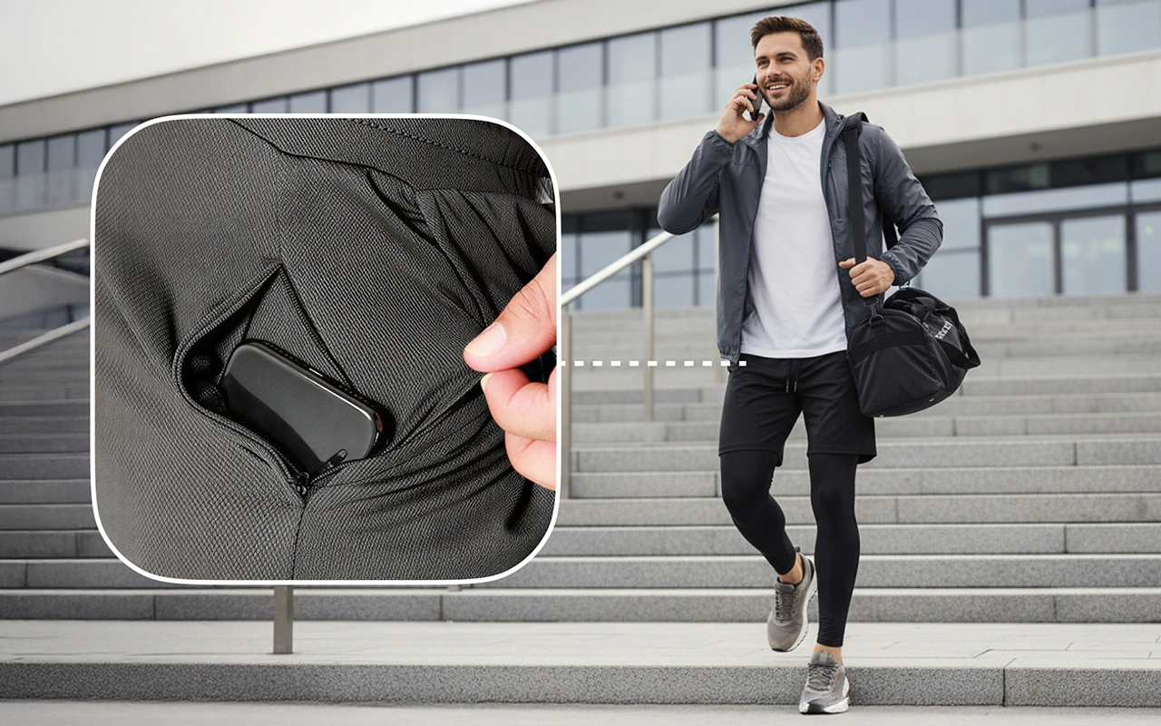 Pružný materiál mi umožňuje pohyb ve všech směrech. Kapsy jsou bezpečné a všechno zůstane na místě při tréninku. Nejlepší je pohodlí.