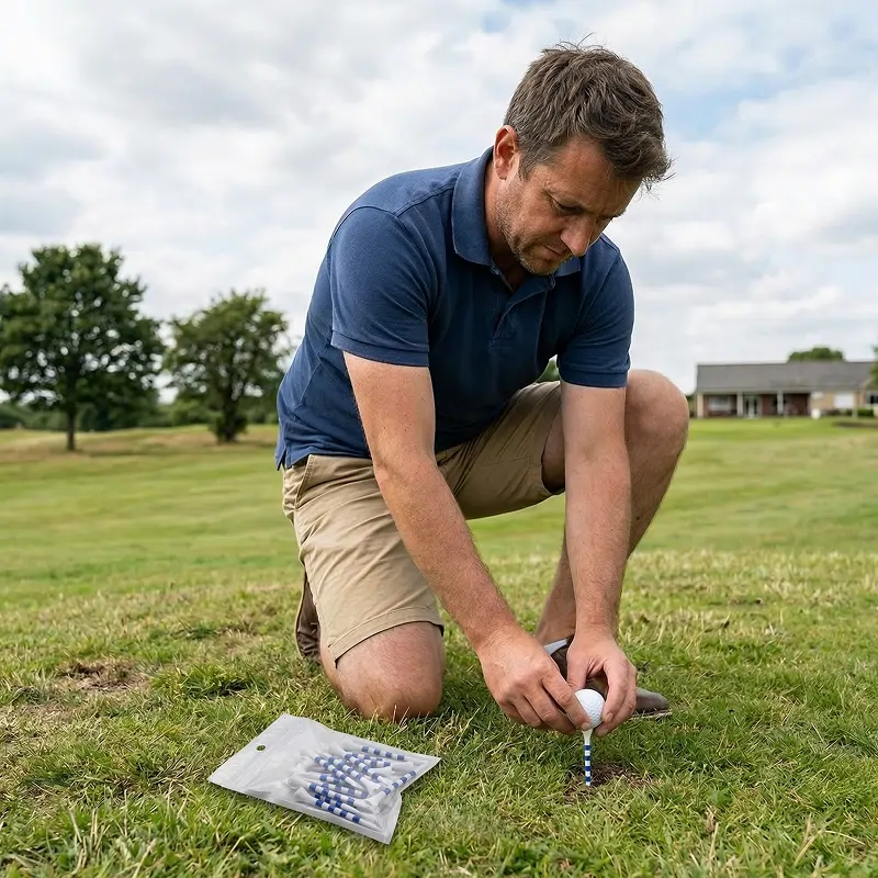 Jako novější golfistka miluji, jak mi tato týčka berou dohady. Srovnám míček podle proužků a vím, že mám driver pokaždé ve stejné výšce.