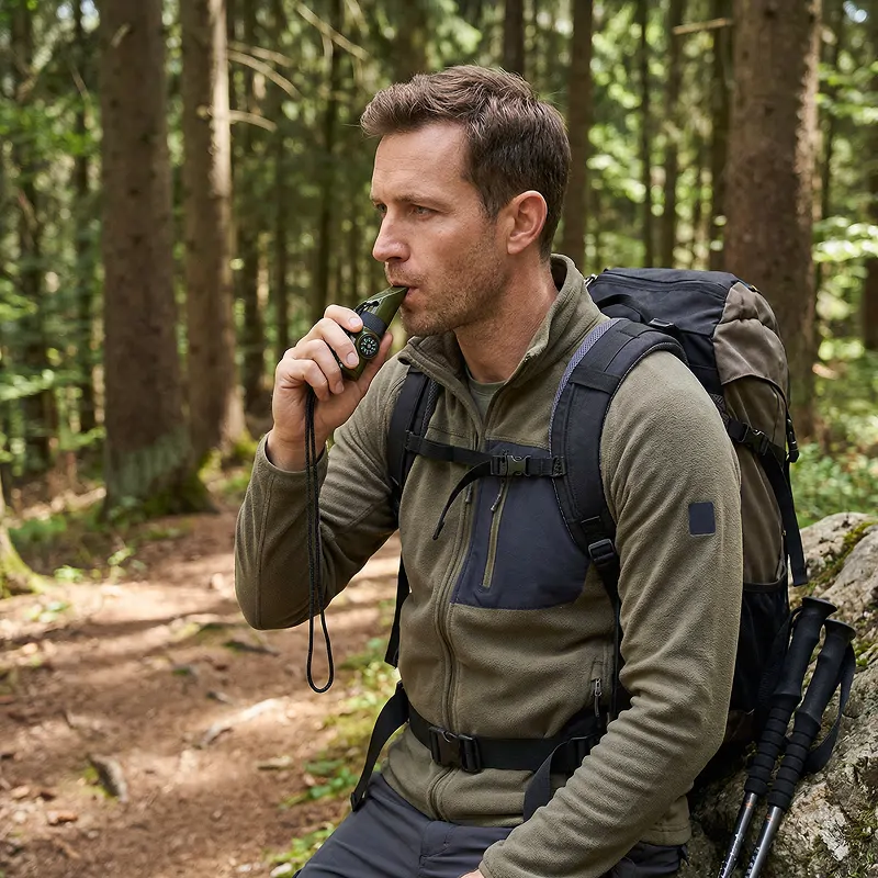 Připínám si píšťalku na batoh, když chodím po horách. Je lehká, praktická a nouzové světlo mě uklidňuje, když se náhle objeví mlha.