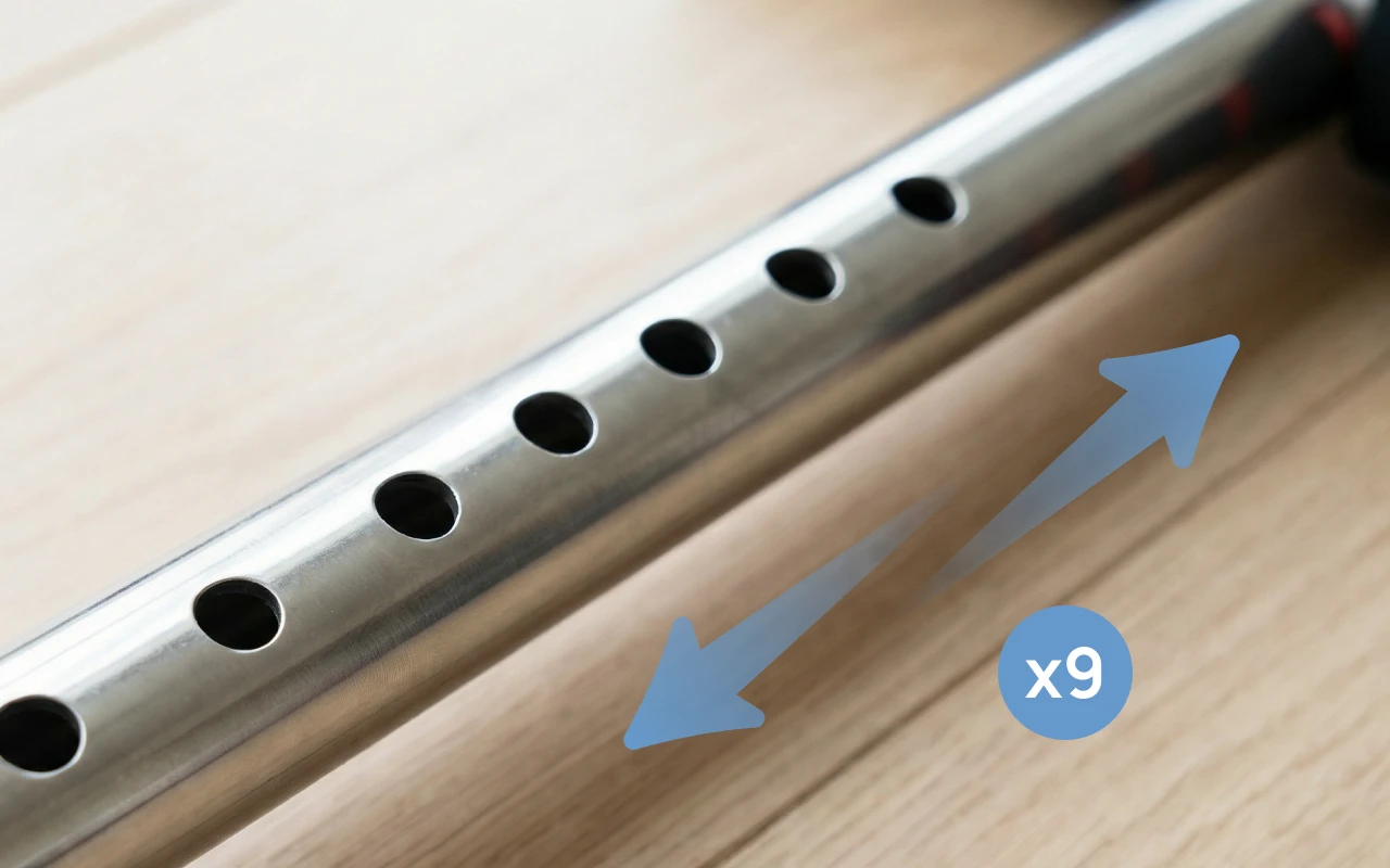 Nastavte devět úrovní podle své výšky a potřeb. Každý si může bezpečně protáhnout tělo bez ohledu na věk nebo schopnosti.