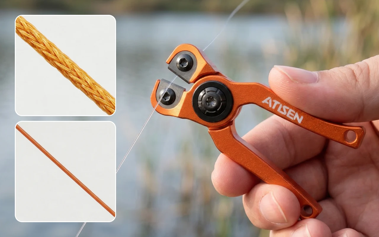 Čistě přeřízne i odolné splétané rybářské šňůry. Rychlá výměna bez námahy a třepení konců.