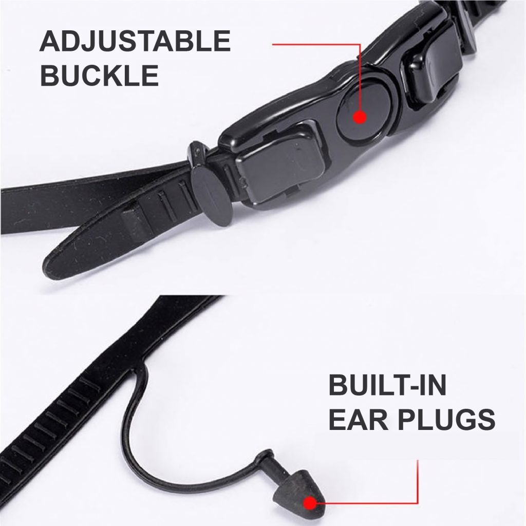 Vestavěné špunty do uší a nosní svorka dělají z těchto brýlí vynikající vše v jednom nákup pro všechny potřeby plavání.
