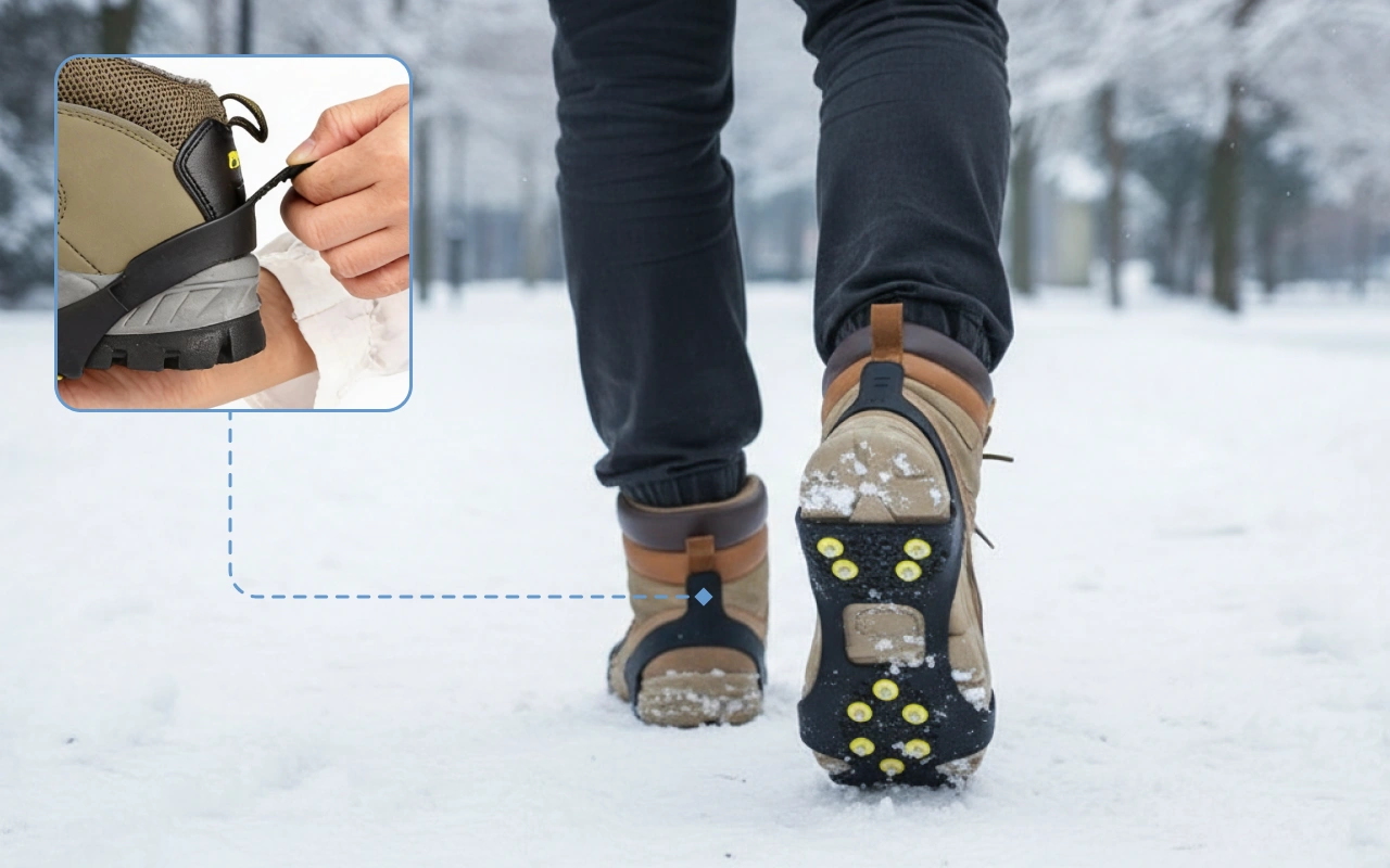 Ocelové hroty se pevně zakusují do zledovatělých cest pro spolehlivou oporu. Každý den se pohybujete sebevědomě po zmrzlé zemi.