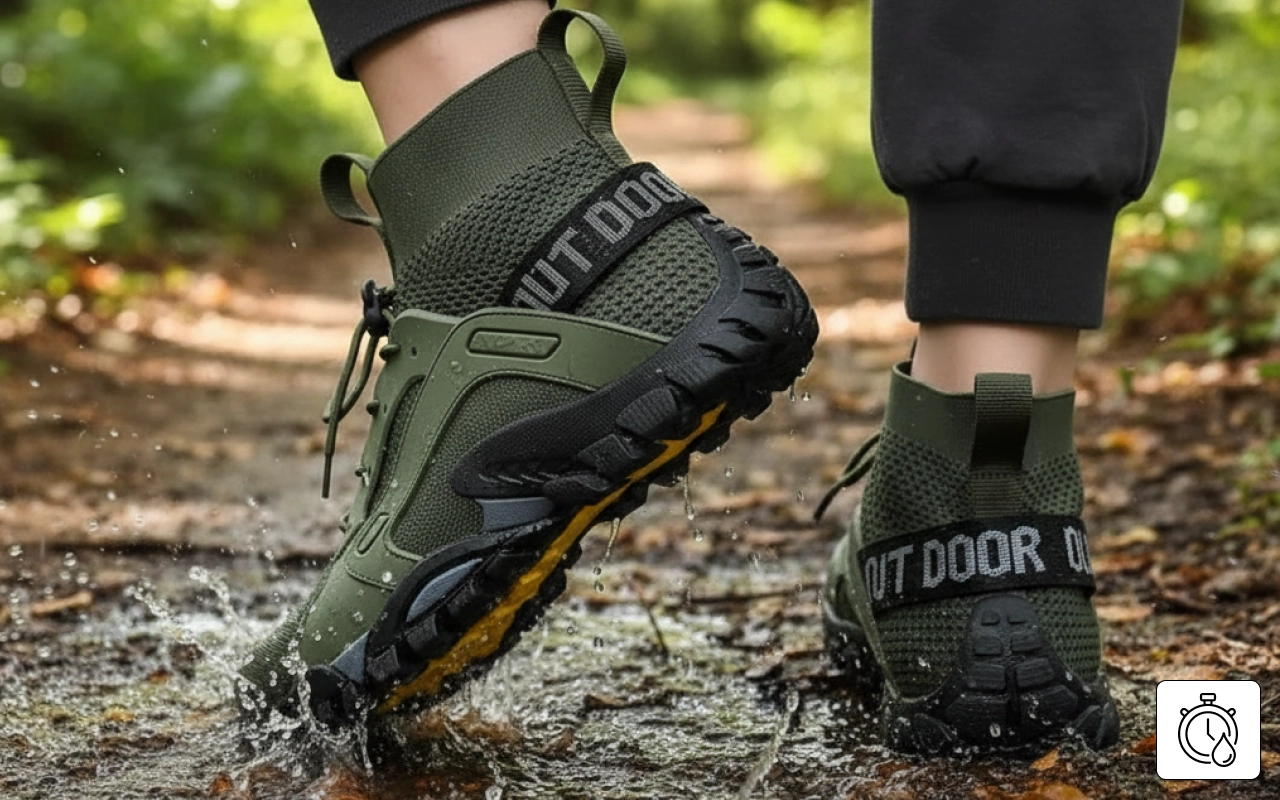 Voda rychle odtéká, takže boty nejsou nasáklé ani těžké. Vaše prsty zůstávají v pohodlí i po dešti nebo cákání.