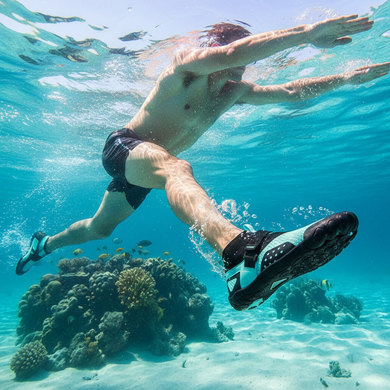 Vydejte se bezpečně po mokrých kamenech i po teplém písku. Bosé boty Threo pomáhají chodidlům snadno uchopit povrchy a chrání před ostrými předměty. Už žádné sklouznutí nebo bolavé paty při venkovních aktivitách. Udržujte prsty v bezpečí při turistice, plavání nebo odpočinku u moře.