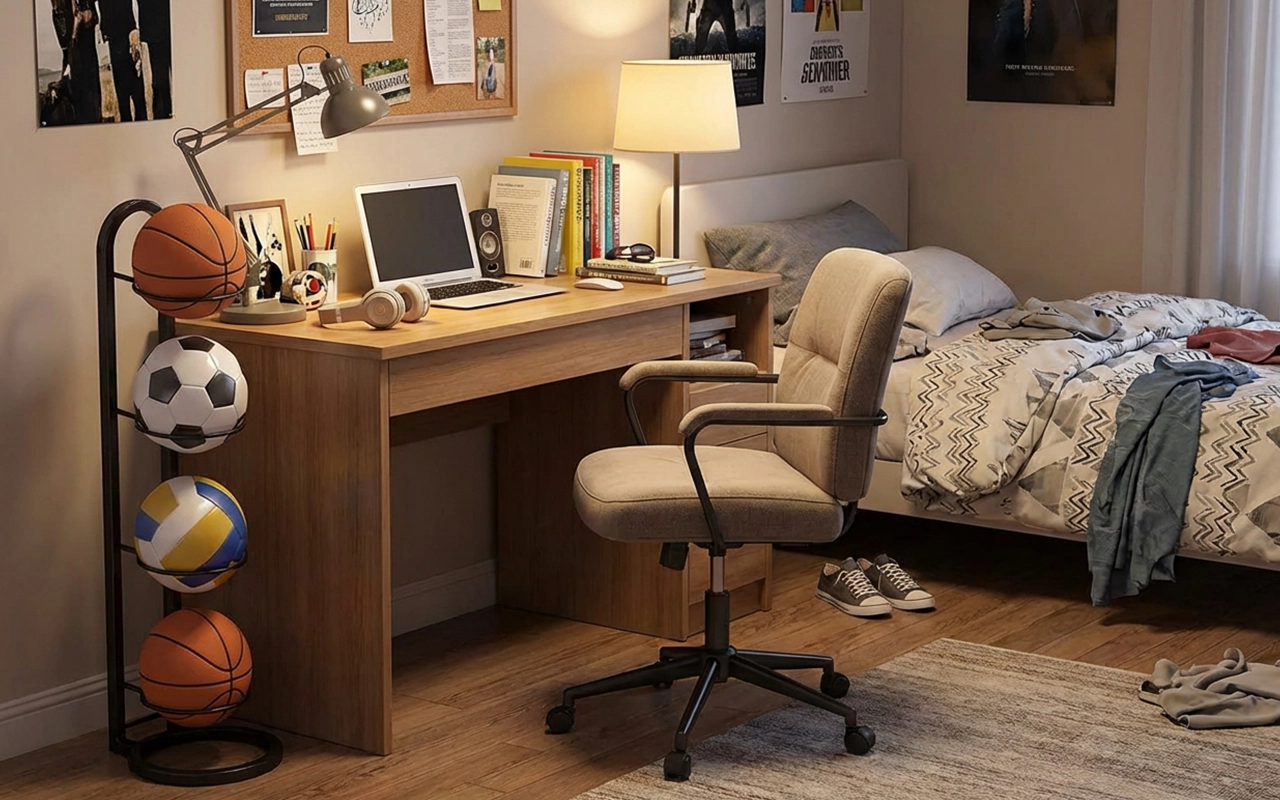 Stojan jsem postavila v pokoji pro mého vnuka. Bez šroubů, bez nástrojů, a teď svůj basketbal opravdu uklízí zpátky do stojanu místo toho, aby ho nechával na posteli.