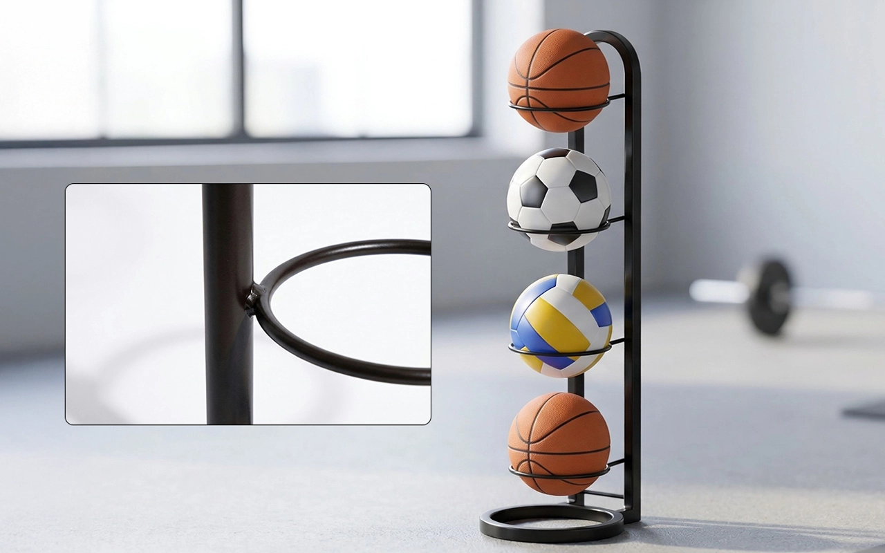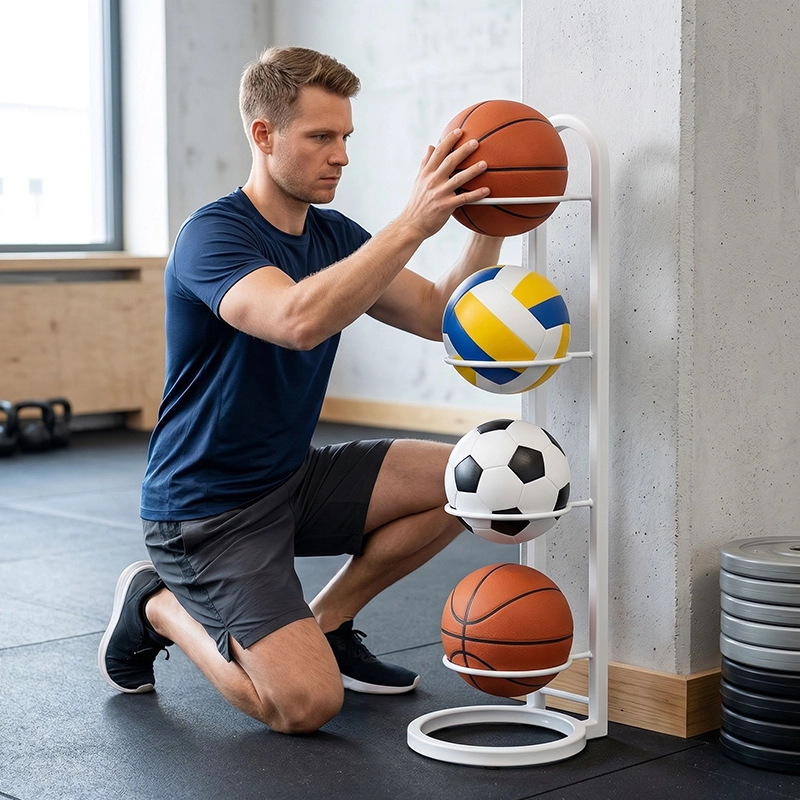 Neuklizené sportovní vybavení rychle zmizí díky tomuto chytrému stojanu. Pevná konstrukce z uhlíkové oceli vydrží každodenní používání. Jeho jednoduchý styl hladce zapadne do ložnic, obývacích prostor i posiloven. Nejsou potřeba žádné šrouby, takže jej každý rychle sestaví. Užívejte si více prostoru a mějte každý míč vždy po ruce.