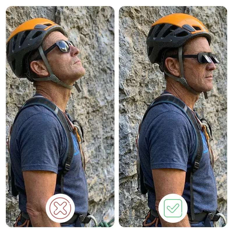Lezení může rychle namáhat váš krk a odvádět vaši pozornost. Brýle Threo vám umožní soustředit se tam, kde je to nejdůležitější. Lehký design snadno sedí na většinu slunečních nebo dioptrických brýlí. Uvidíte každý krok zřetelně a nic vám neunikne. Zažijte bezpečnější lezení s menším nepohodlím.