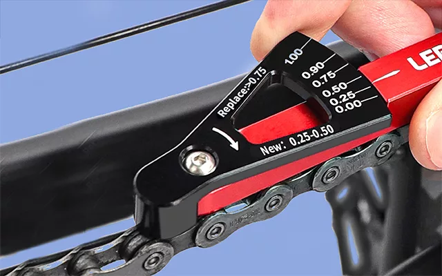 Měřič opotřebení řetězu Threo přesně měří prodloužení řetězu a obsahuje indikátor opotřebení, který rychle ukáže, kdy je potřeba řetěz vyměnit. Vyroben z odolných materiálů vhodných pro silniční i horská kola, náš kompaktní nástroj je nezbytností pro cyklistické nadšence všech úrovní.
