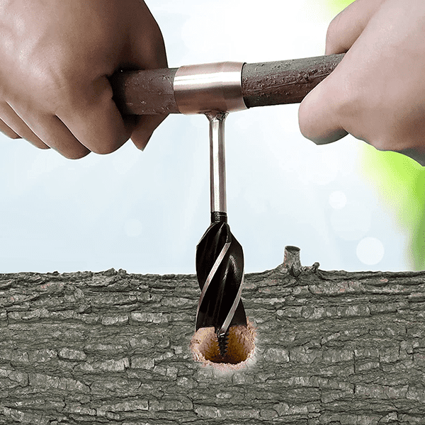 Ruční vrtačka Threo je odolný, univerzální a přesný nástroj pro práci se dřevem. Vrtajte otvory do dřeva a používejte ji pro jakékoli přežití v přírodě, jako je kempování, džunglové řemesla a bushcraft.