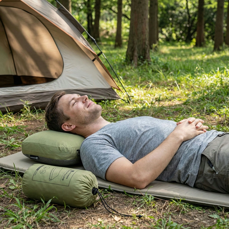 Koupil jsem polštář pro manželčiny stanové výlety. Poprvé se probudila bez bolavého krku. Dá se zabalit do malého balíčku a po vyprání rychle schne.