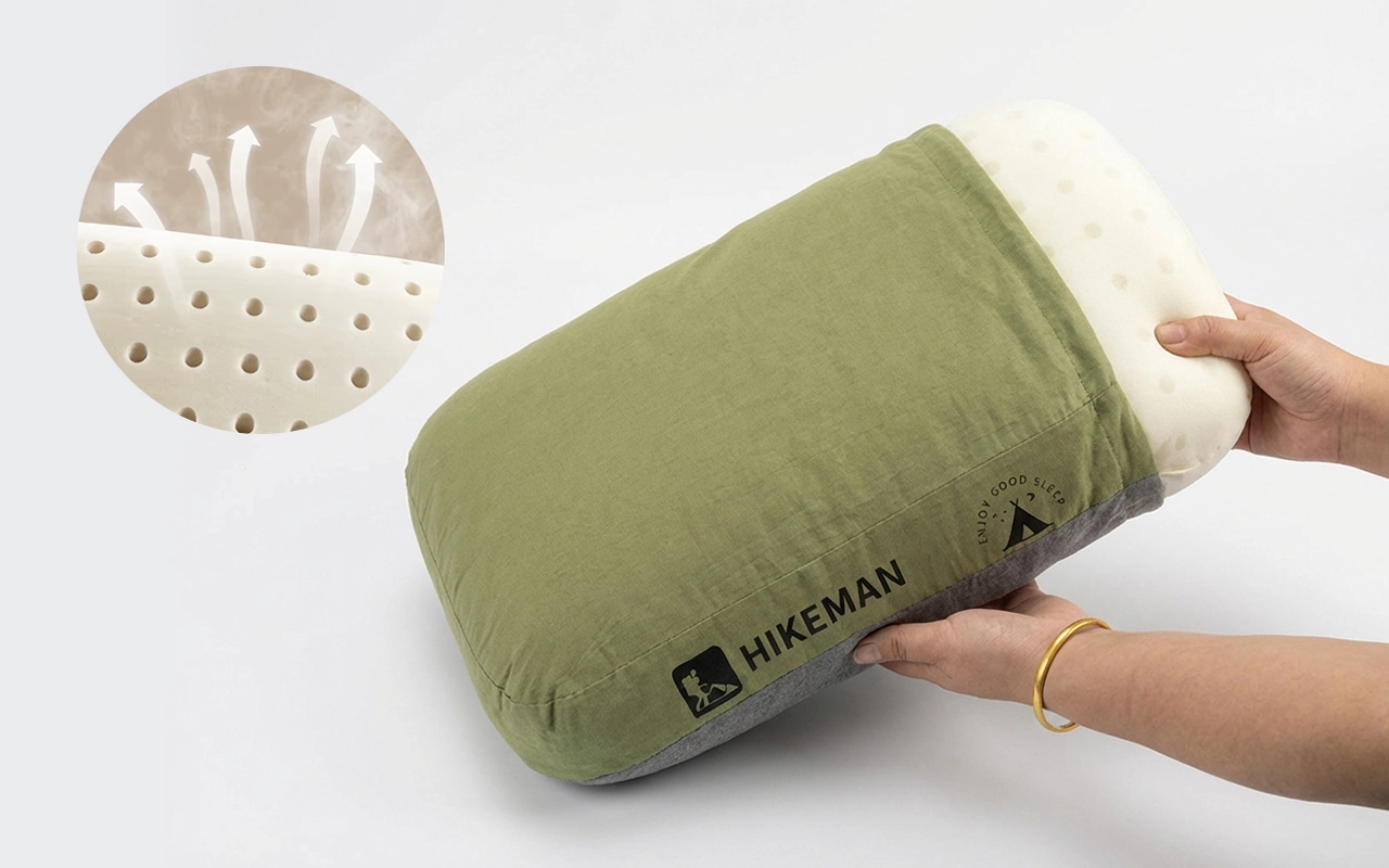 Začala jsem tento kempingový polštář používat i doma během horkých nocí. Zůstává vzdušný, svaly na krku se uvolní a povlak můžu každý týden vyprat díky zipu.