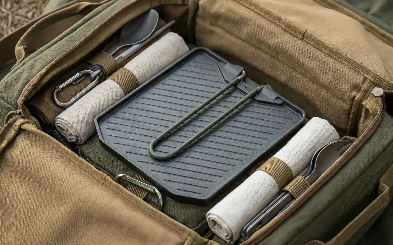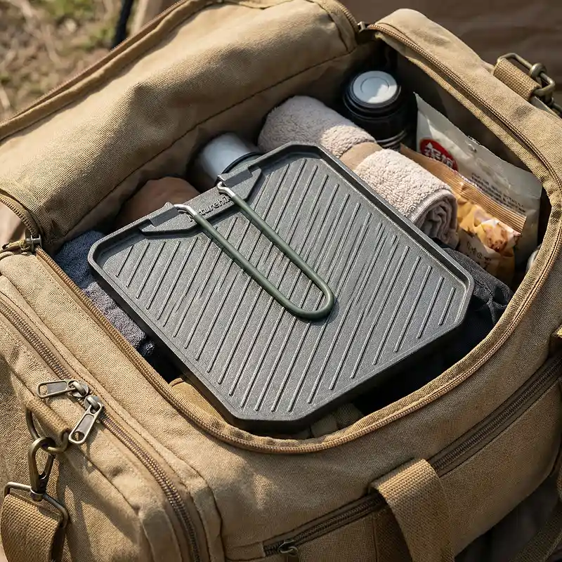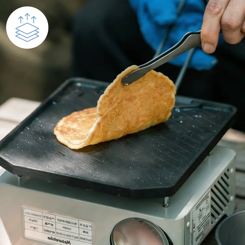 Tato kempingová pánev dokonale pasuje na náš malý hořák. Stir-fry, zapečené toasty i hash browns se dělají rovnoměrně a rychlé opláchnutí ji nechá vypadat jako novou.
