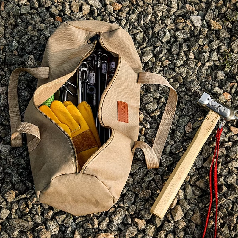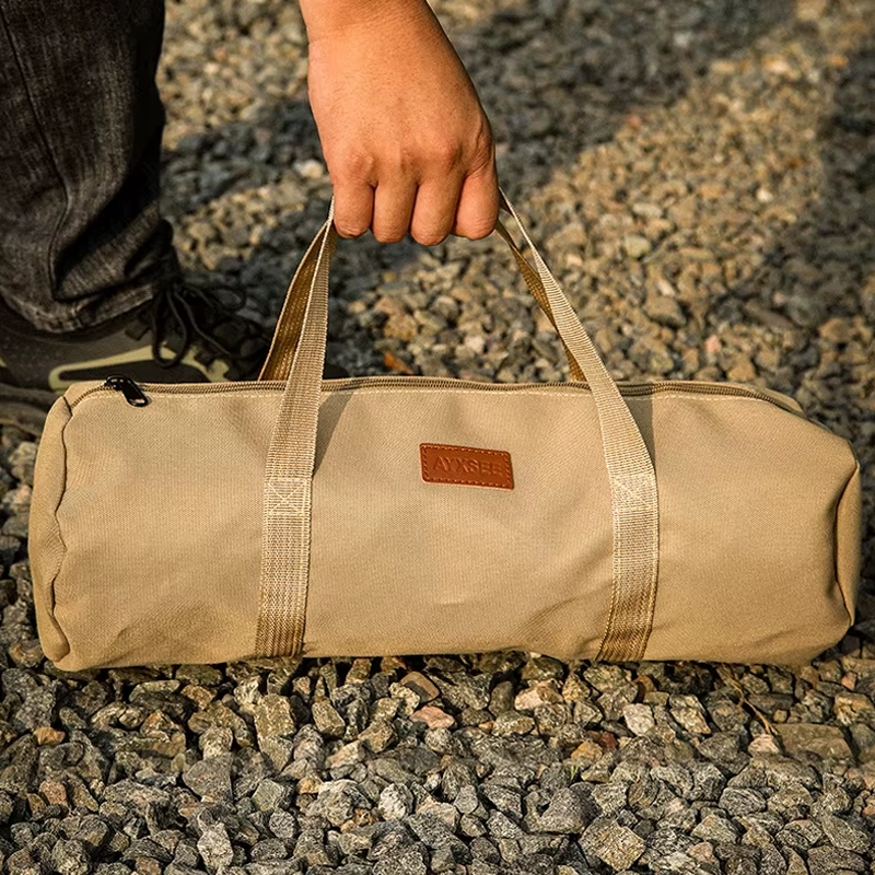 Mám ho v našem karavanu s náhradními kolíky a skládacím kladivem. Látka působí pevně a ucha jsou pohodlná i když je taška plná.