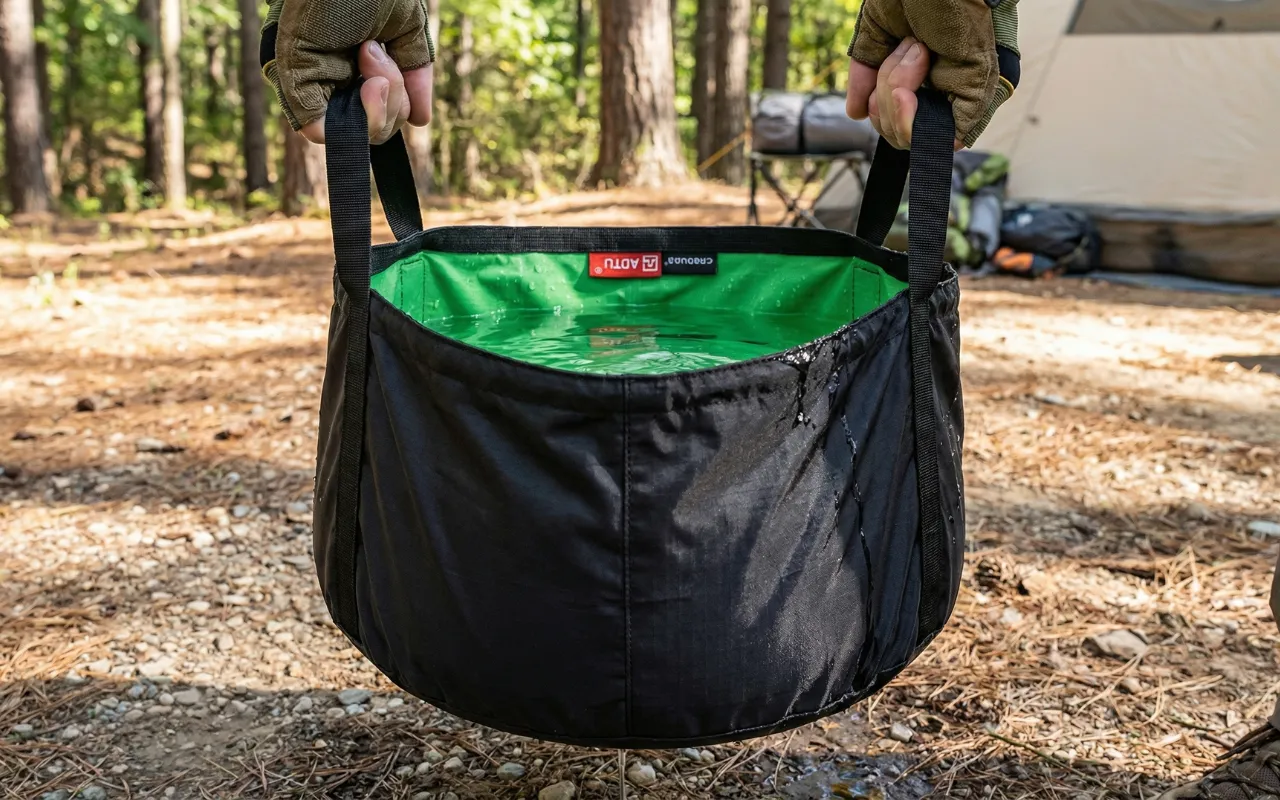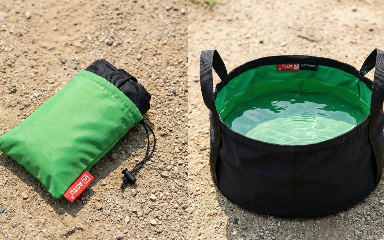 Koupil jsem tento skládací kbelík na kempování s dětmi v autě. Usnadnil mytí zeleniny, nádobí a špinavých rukou bez neustálého běhání ke kohoutku a zpět.
