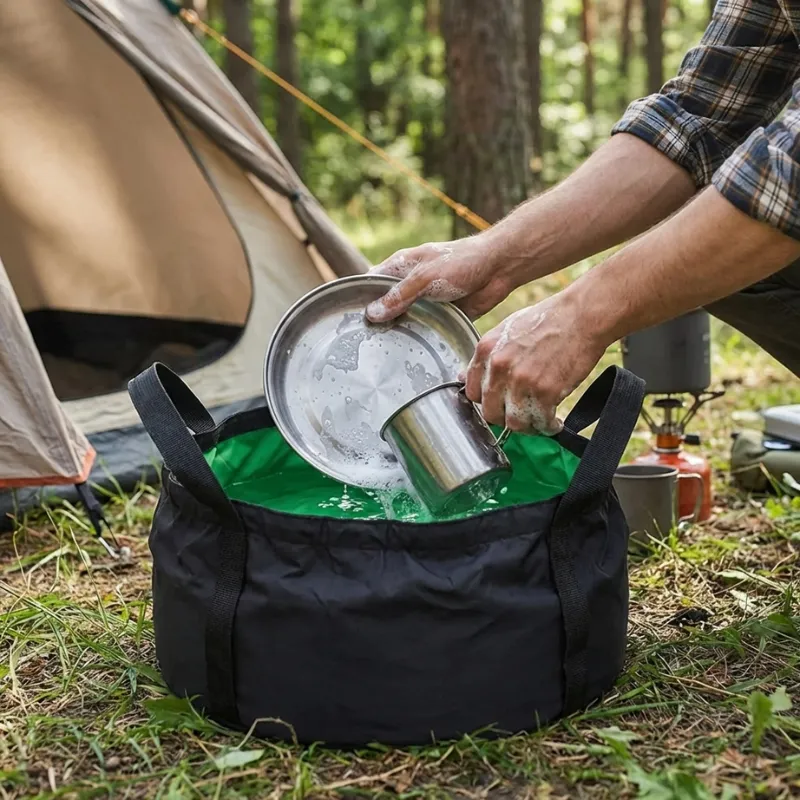 Zapomeňte na objemné nádoby, které zabírají cenné místo. Skládací umyvadlo Threo Camping Wash Basin udrží vaše nezbytnosti po ruce a připravené k použití. Úklid po jídle nebo mytí rukou je jednoduché a rychlé. Užívejte si dobrodružství s jistotou, že jste vždy připraveni.