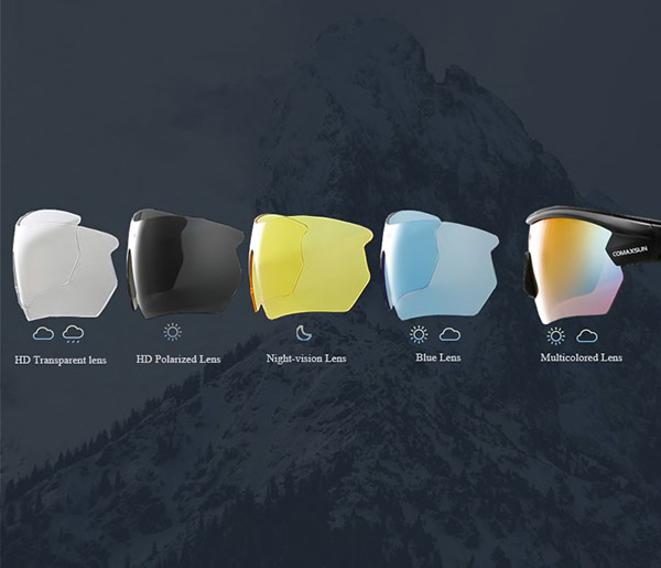 ✔️ RŮZNÉ MOŽNOSTI ČOČEK — K dispozici je 5 kvalitních barevných variant optických čoček. Vhodné pro různé světelné podmínky, lze je měnit podle počasí.