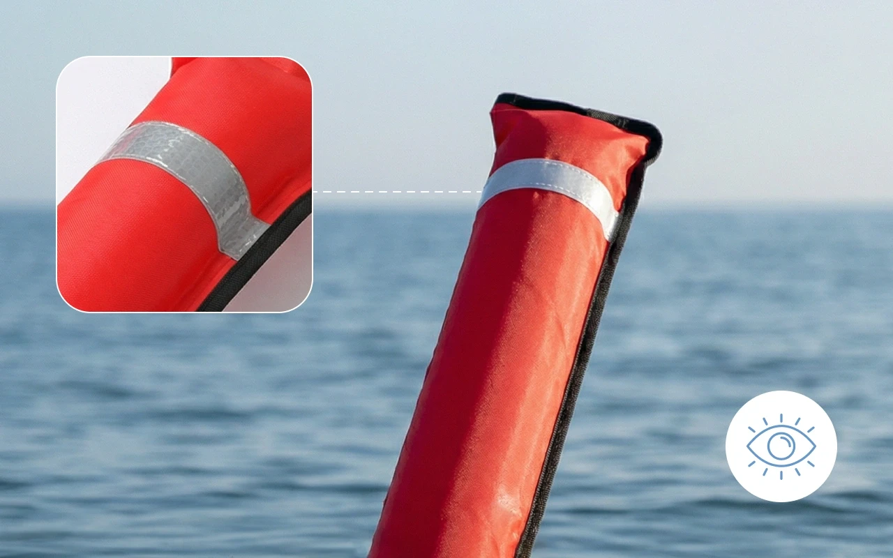 Beri tuto bójku na každý ponor. Snadno ji najdu, složí se úhledně, má odolný materiál. Je fajn vědět, že mě lodě mohou vidět.