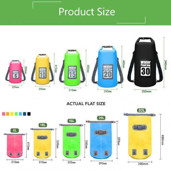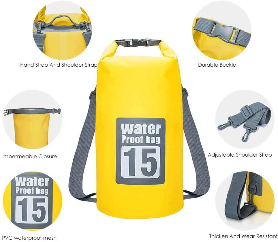 K dispozici ve velikostech 5, 10, 15, 20 a 30 litrů, které vám umožní snadno uspořádat a chránit veškeré vybavení, od záchranných vrstev až po mobilní telefony a fotoaparáty. Je to ideální lehký vak pro rafting, kajak, pláž, kempování, turistiku, potápění a další aktivity, kdy chcete chránit své cennosti před vodou.