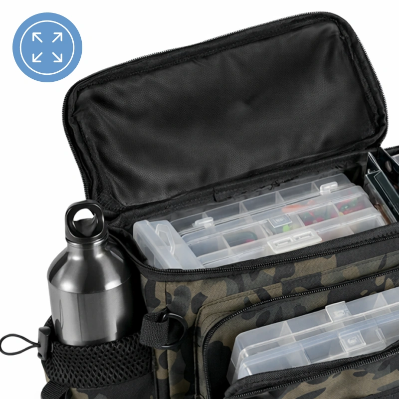 Více kapes umožňuje rychlé nalezení všech rybářských nástrojů uvnitř. Okamžitě sáhnete po navijácích, návnadách nebo vlascích bez vysypání celé tašky.