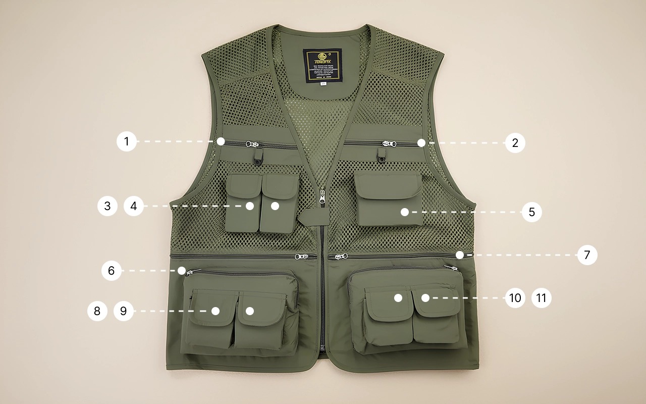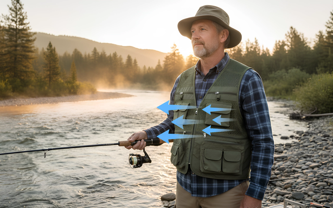 Tak pohodlná pro turistiku i rybaření. Vzduch dobře proudí a vesta je super lehká. Velké kapsy mi pomohly oddělovat důležité věci.