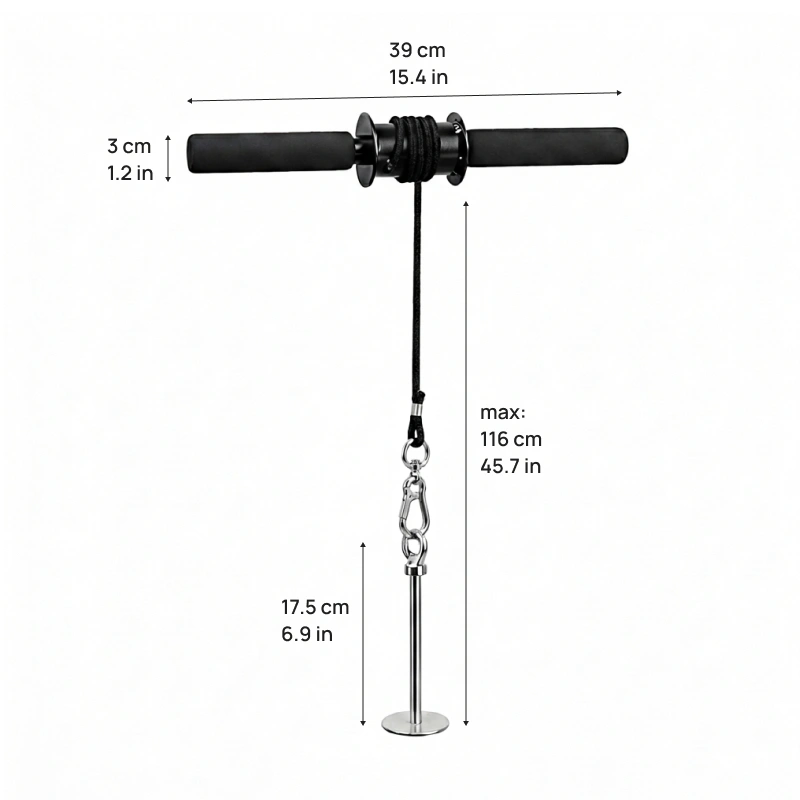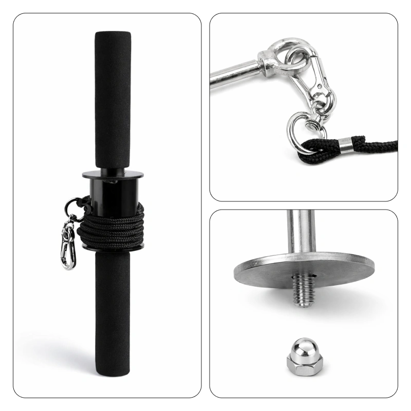Robustní ocel a pevný nylon zaručují dlouhodobou bezpečnost. Spolehněte se na Threo Wrist Roller pro stabilní podporu při každém tréninku.