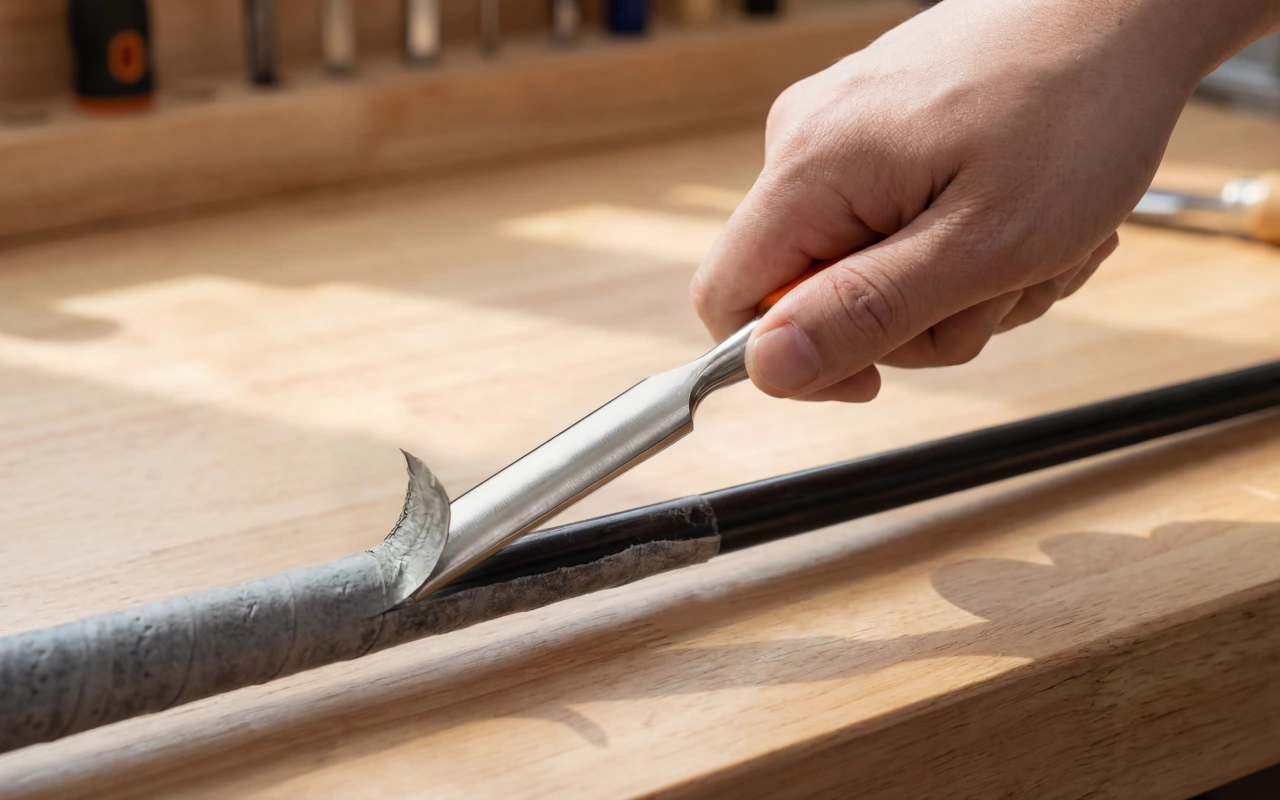 Každé jaro přezouvám své hole a tenhle malý odstraňovač všechno změnil. Rychle vklouzne pod starou pásku a vůbec nepoškrábe shafty.