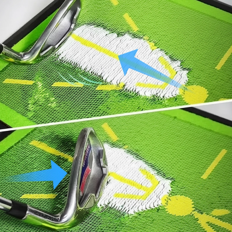 Naše tréninková podložka jasně ukazuje stopy po dopadu, což vám pomáhá rozpoznat a opravit běžné chyby ve švihu.