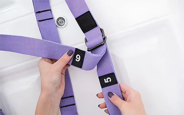 Cítím mnohem větší jistotu při zkoušení nových jógových pozic, když mi tento popruh pomáhá. Nastavení popruhů je rychlé a šetří čas.