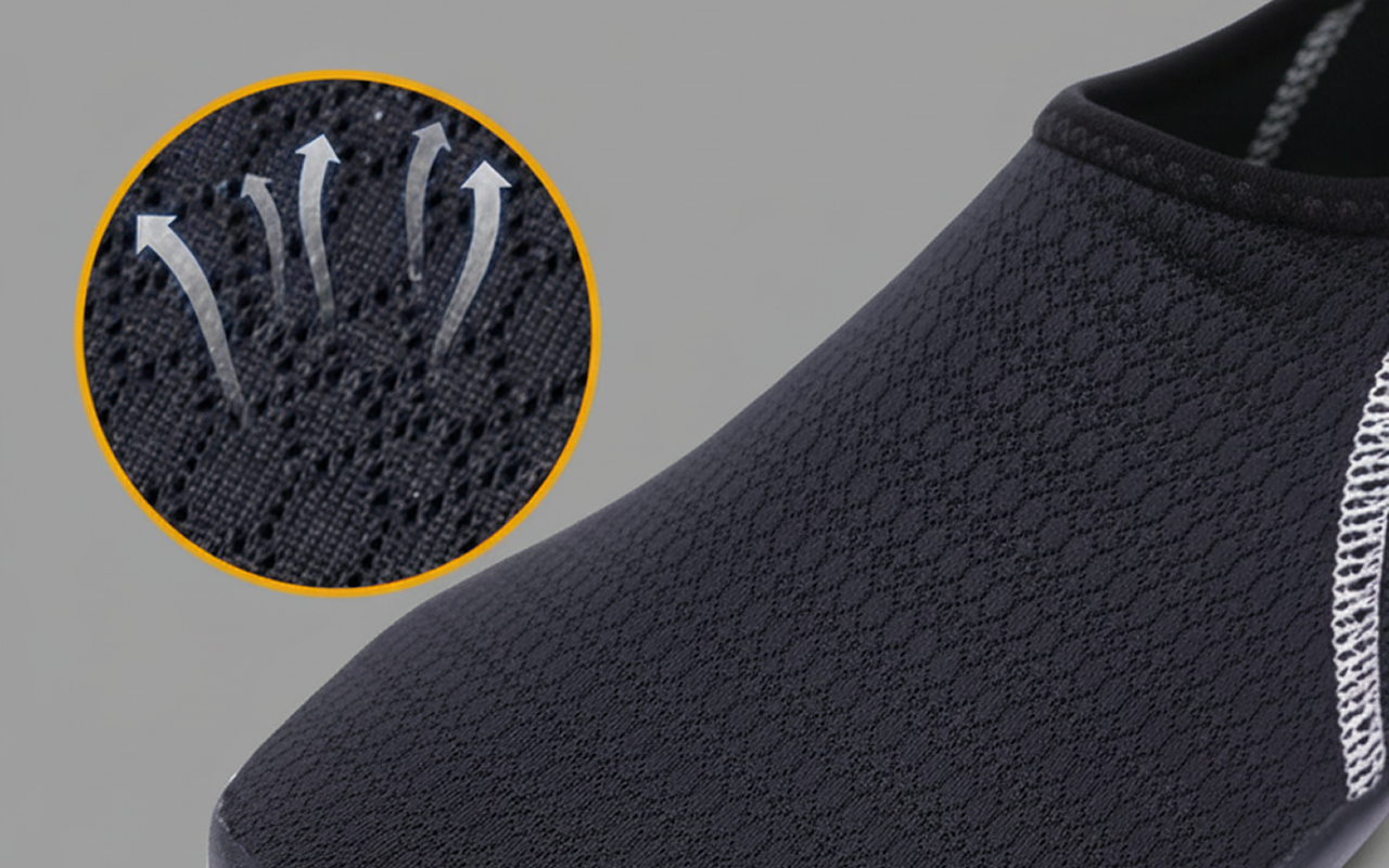 Speciální síťovina umožňuje rychlý odtok vody a zabraňuje těžkým botám. Užijte si suché a svěží kroky mnohem dříve po každém cákání.