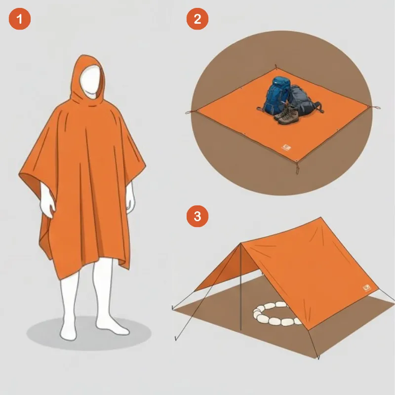 Použila jsem tuto pláštěnku jako rychlý úkryt před sluncem na synovcově fotbalovém zápase. Chrání před deštěm i sluncem — opravdu praktická!