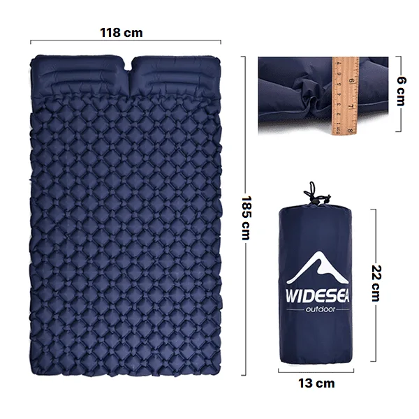 Nafukovací matrace Threo je připravena přinést vám bezkonkurenční pohodlí. Užijte si příjemný čas v suchu a bezpečí, s vědomím, že vás nic nevyruší během spánku. Naše podložka je voděodolná a její pevná konstrukce a námořnická modrá barva ji činí odolnou vůči opotřebení. Je kompaktní a lehká, takže si můžete užít kvalitní odpočinek kdekoliv.