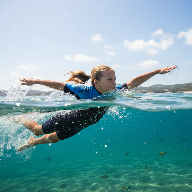 Každé cákání je příjemnější, když dětem není hned zima. Threo neopren používá měkký, pružný materiál, který jemně obepíná každou křivku. Krátké rukávy umožňují volný pohyb v bazénu, takže plavání je zábavné.
