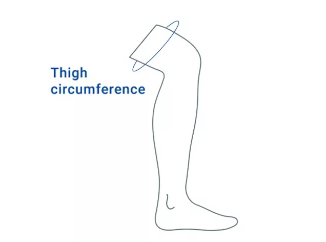 - 2. Omotejte krejčovský metr kolem stehna přibližně 10 cm nad kolenem.