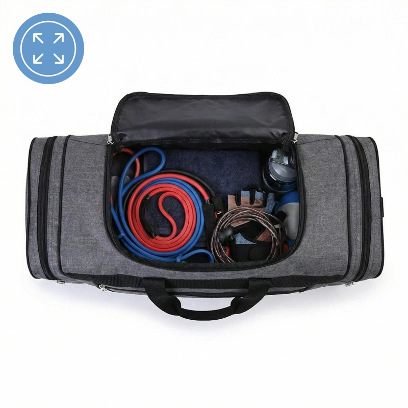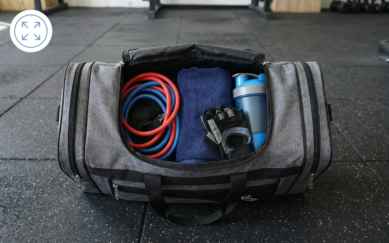 Vše vybavení na cvičení včetně ručníků se vejde do prostorné tašky. Už nikdy se nemusíte bát, že vám dojde místo.