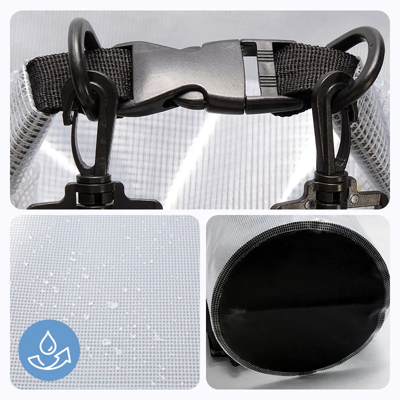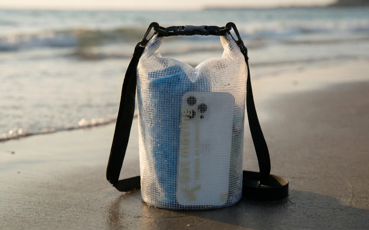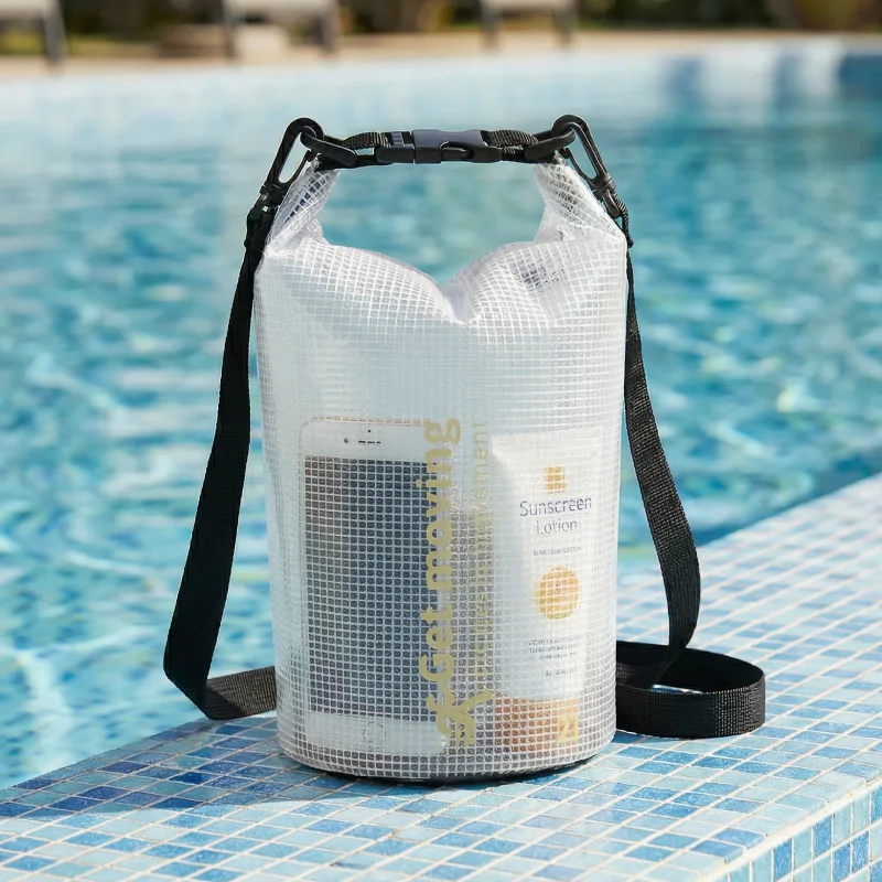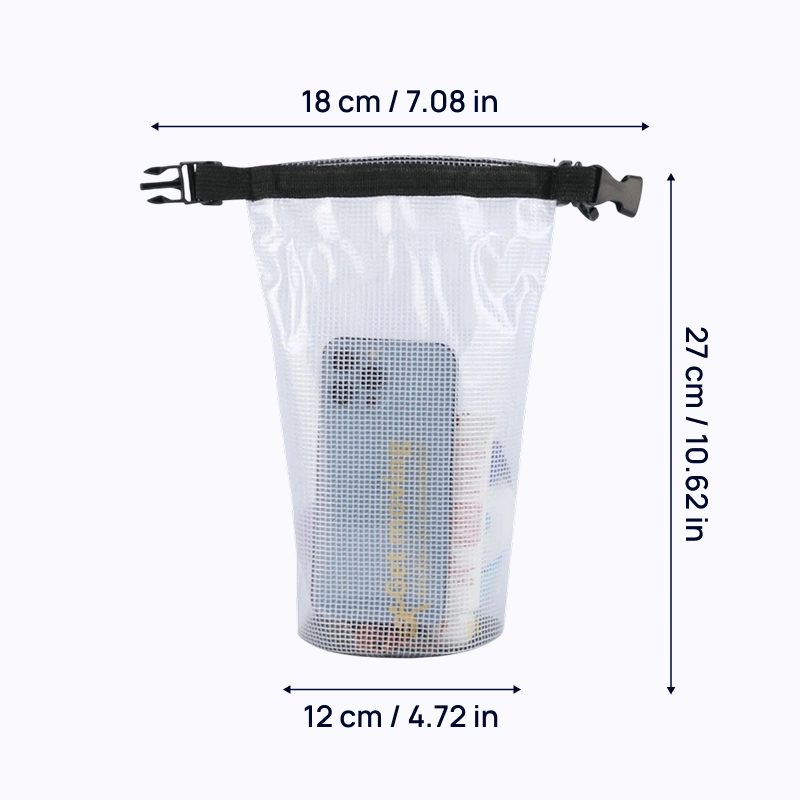 Věci zůstanou v suchu díky voděodolné síťovině. Dovnitř se nedostanou žádné stříkance ani písek, takže osobní věci zůstávají v bezpečí.