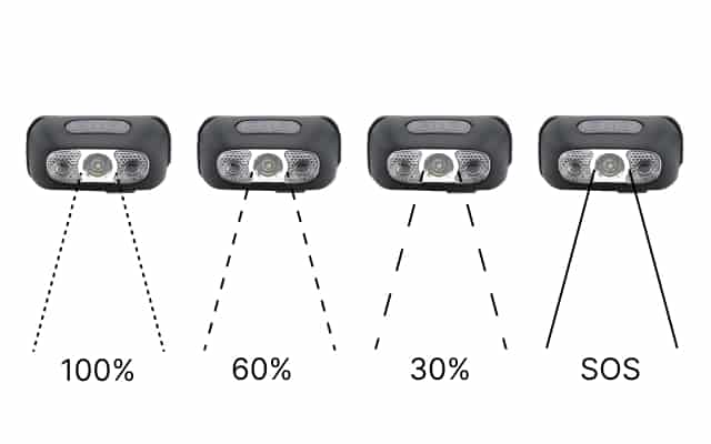 S 4 úrovněmi jasu si můžete vybrat ideální osvětlení podle potřeby – ať už slabé světlo pro stavbu stanu, jasné světlo pro orientaci na stezce, nebo SOS signál v případě nouze.