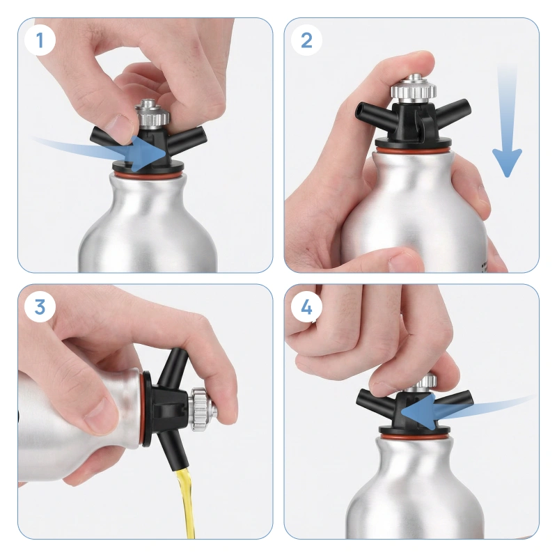 Snadno přelévejte obsah bez sundání víčka a bez rizika cákání. Chytrý systém dvojitého hrdla udrží proud stabilní a bezpečný.