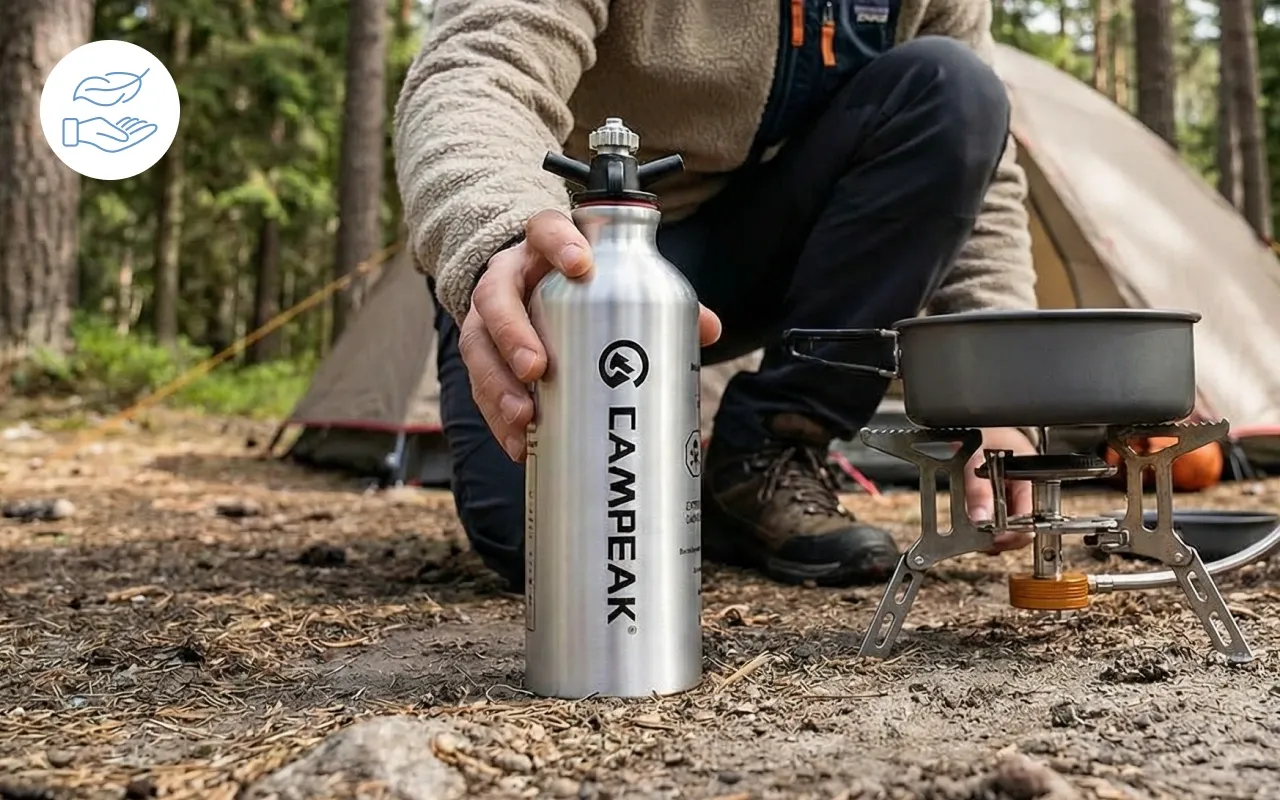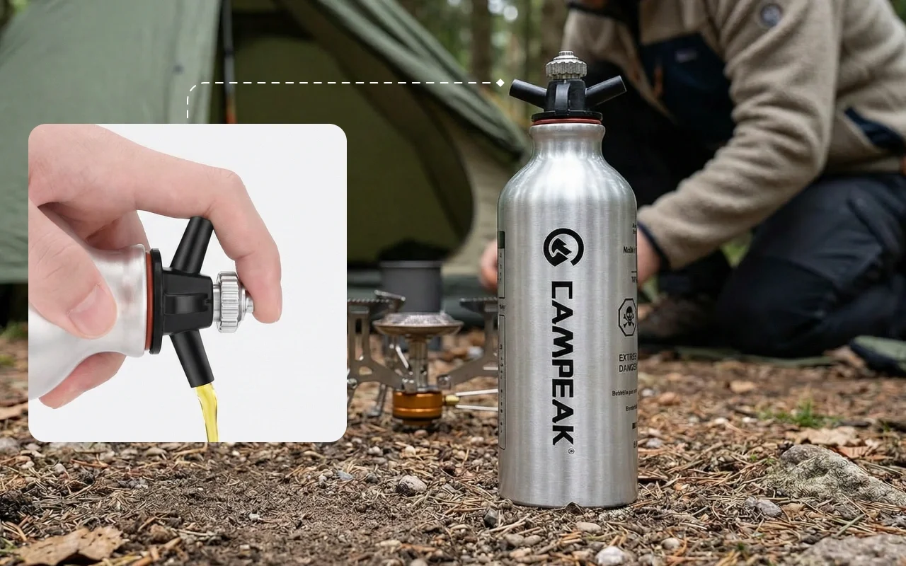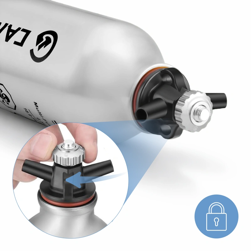 Každý výlet do přírody je snadnější, když důvěřujete svému vybavení. Láhev na palivo Threo se vždy snadno vejde do batohu nebo kapsy. Speciální uzávěr zabraňuje rozlití a umožňuje vám plnou kontrolu při nalévání. Užijte si bezpečné uložení a bezstarostnou manipulaci při každém dobrodružství.