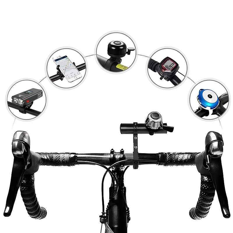 Koupila jsem tento prodlužovač na své denní jízdy a vejde se mi na něj vše, co potřebuji. Teď mám světlo, telefon i zvonek pěkně uspořádané vedle sebe!