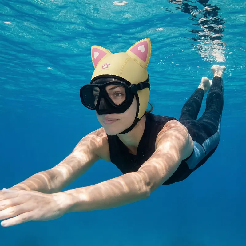 Užijte si zábavu a bezpečí pokaždé, když plavete nebo se potápíte. Čepice Threo s kočičími oušky vás ve vodě udrží viditelné a v teple. Měkký materiál jemně obepíná vaši hlavu a chrání vaše vlasy. Jasné barvy umožní vašim přátelům vás rychle najít. Ideální pro každého, kdo miluje vodní dobrodružství.