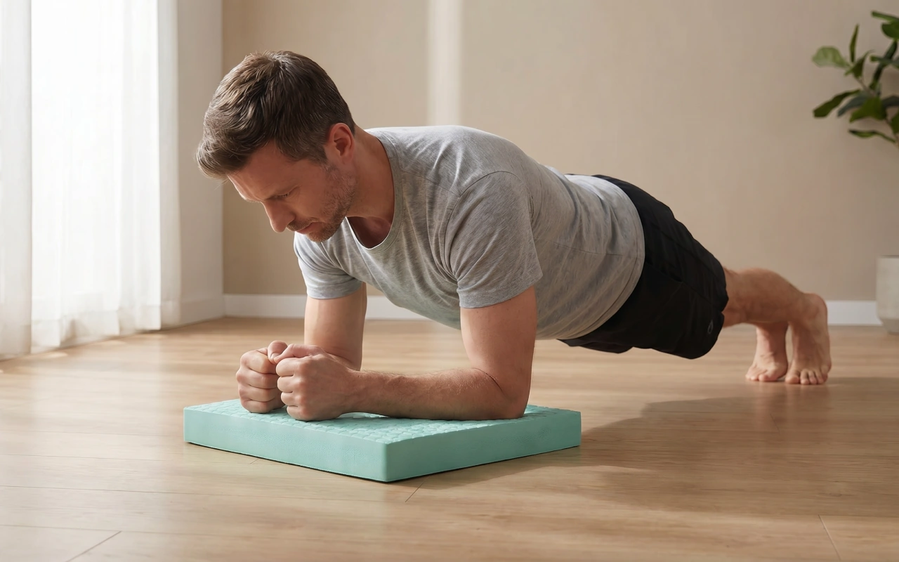 Tahle malá podložka proměnila můj obývák v malé fitko. Používám ji na prkna, mosty a výpady a zápěstí i kolena mají jemnou, ale jistou oporu.