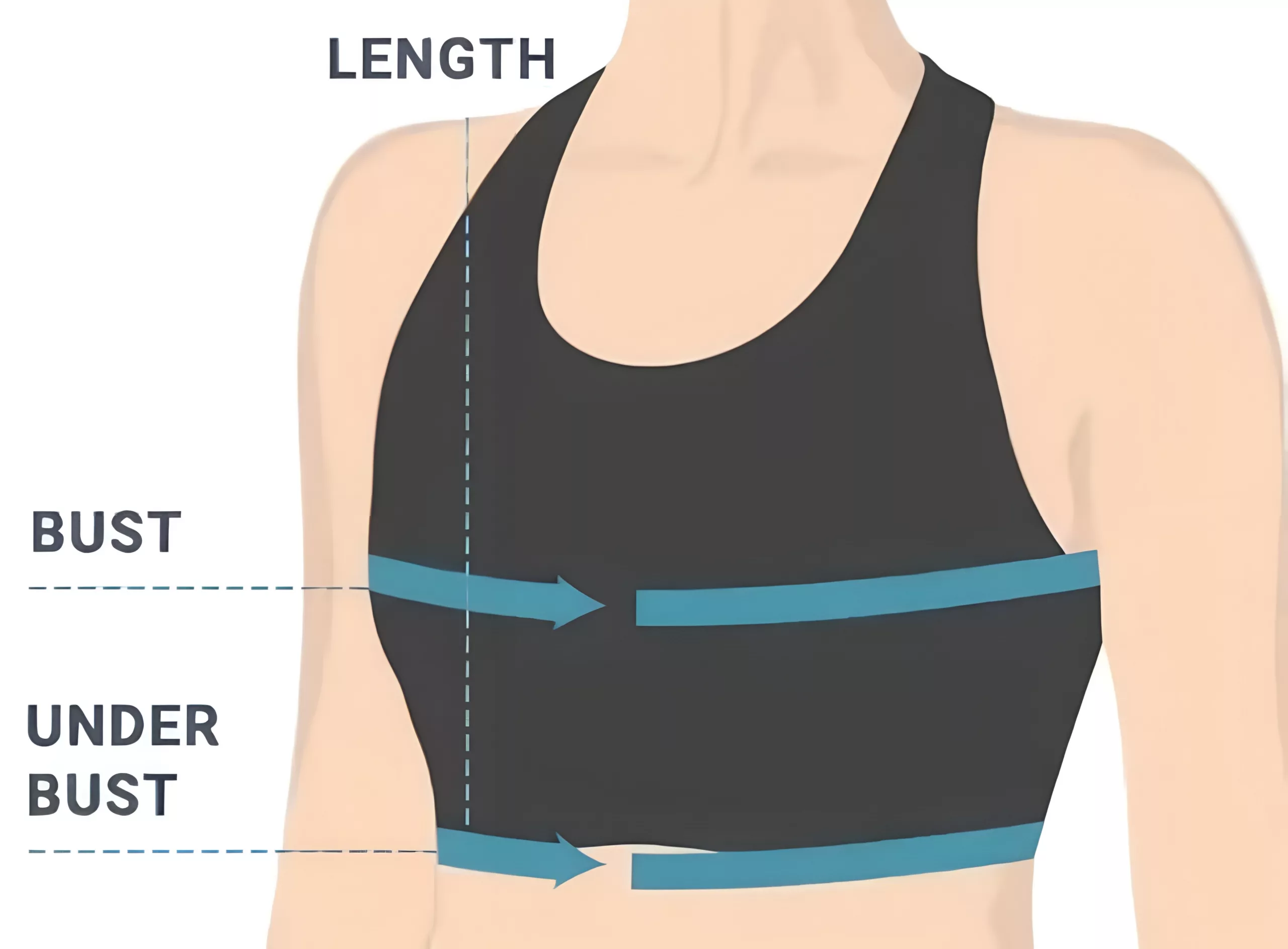 - 4. Začněte měřicí páskou na rameni a veďte ji dolů k linii pod prsy.