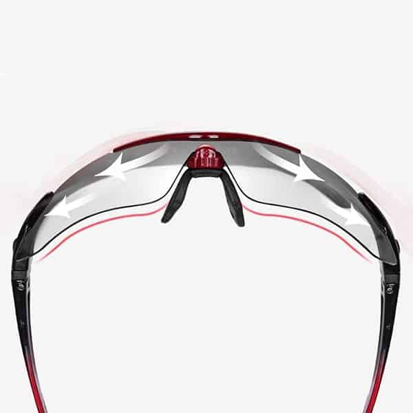 Fotochromatické cyklistické brýle THREO dokonale chrání váš zrak před slunečním zářením. Čočky automaticky přizpůsobují úroveň ztmavení a jasu podle různých stupňů ultrafialového záření. Navíc naše brýle nabízejí dokonalou adaptaci na všechny světelné a povětrnostní podmínky. Díky této technologii nikdy nebudete muset měnit brýle při různých venkovních aktivitách. Navíc široké čočky poskytují větší zorné pole a chrání vaše oči před větrem, prachem a komáry.