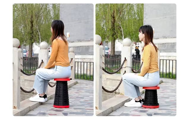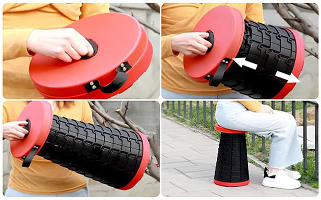Sestavení naší stoličky je hračka díky hladkému teleskopickému mechanismu. Stačí uchopit knoflíky na obou koncích, táhnout je od sebe, otočit v opačných směrech a postavit stoličku na vhodnou rovinu. Za pouhé čtyři jednoduché kroky budete mít své místo připravené.