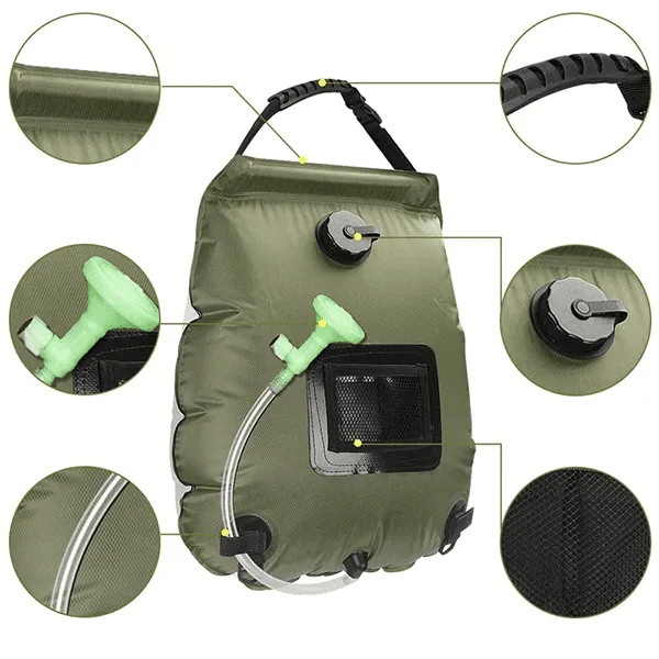 Threo Water Bag je spolehlivé a efektivní řešení sprchování pro milovníky přírody. Může ohřívat vodu po dobu 3 hodin na přímém slunci a pojme až 20 l/5 galonů vody, což poskytuje 8-10 minut nepřetržitého koupání. Snadné zavěšení a přenášení — ideální venkovní doplněk pro kempování, turistiku, batůžkářství a další.