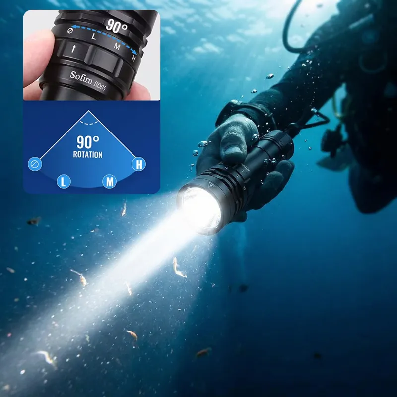 Prosvětlete intenzivními 3000 lumeny i tu nejtemnější vodu. Každý detail je viditelný a noční ponory jsou bezpečné dobrodružství.