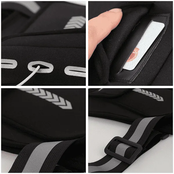 Reflexní pásky na naší tašce na hrudi vám umožní zůstat viditelní za špatných světelných podmínek, což vám umožní bezpečně běžet brzy ráno nebo pozdě večer.